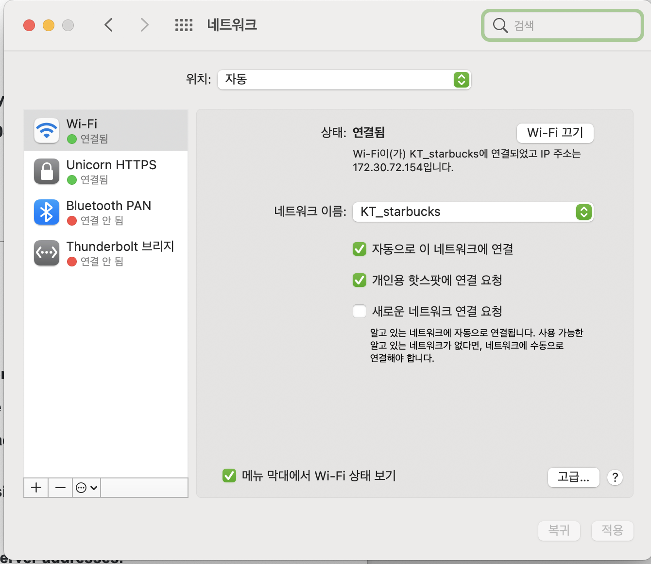 와이파이를 껐다가 다시 연결하면 이제 스타벅스에서도 MongoDB Atlas를 접속할 수 있습니다!