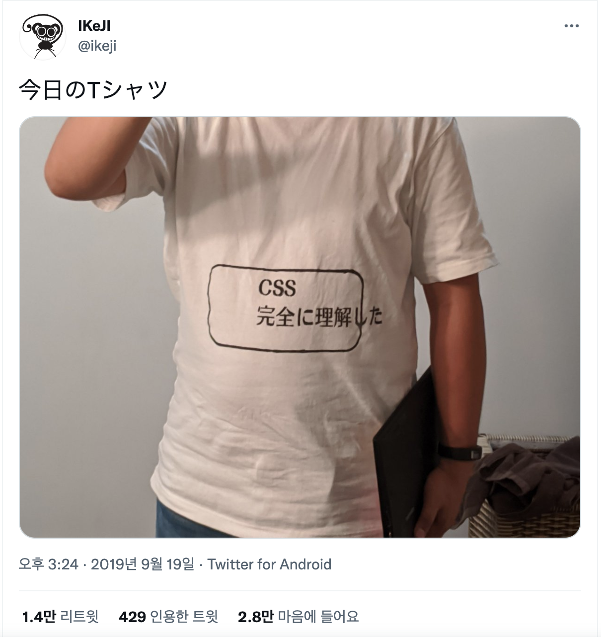 「〇〇 완전히 이해했다」 의 가장 유명하다고 해도 과언이 아닌 것으로선 「CSS를 완전히 이해했다」가 있습니다. 이건 아래 사진처럼 T셔츠도 팔고 있습니다.