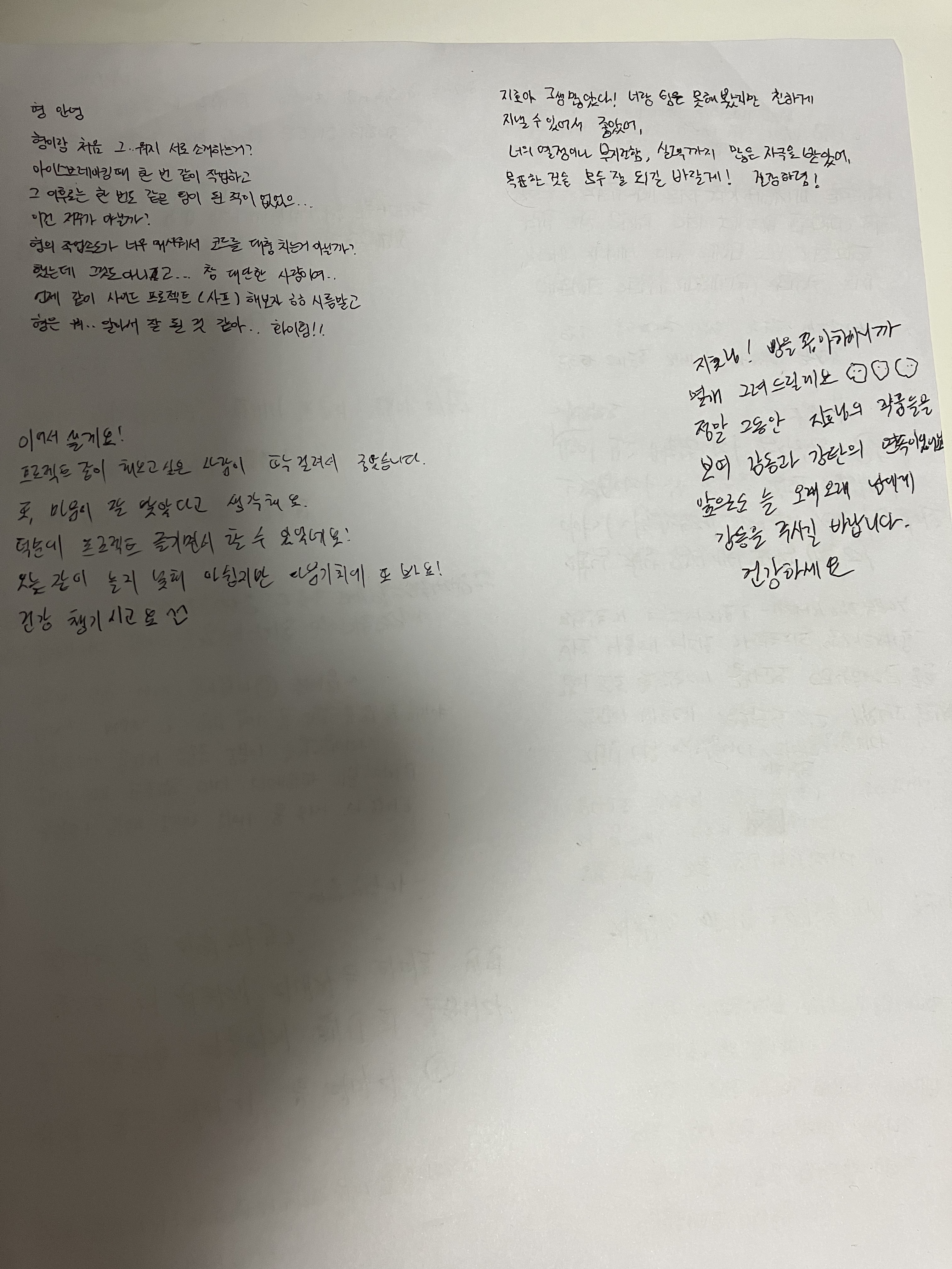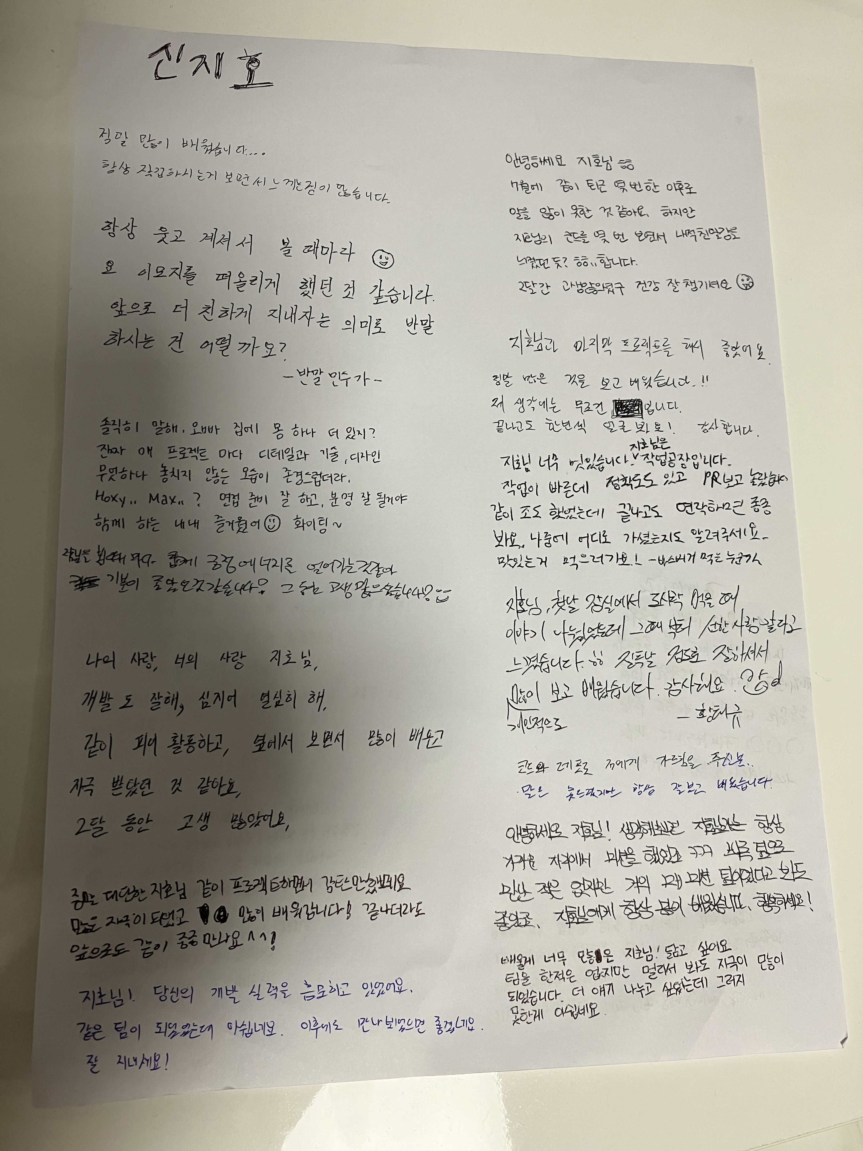 마지막 날, 다 같이 롤링페이퍼를 써주었다.